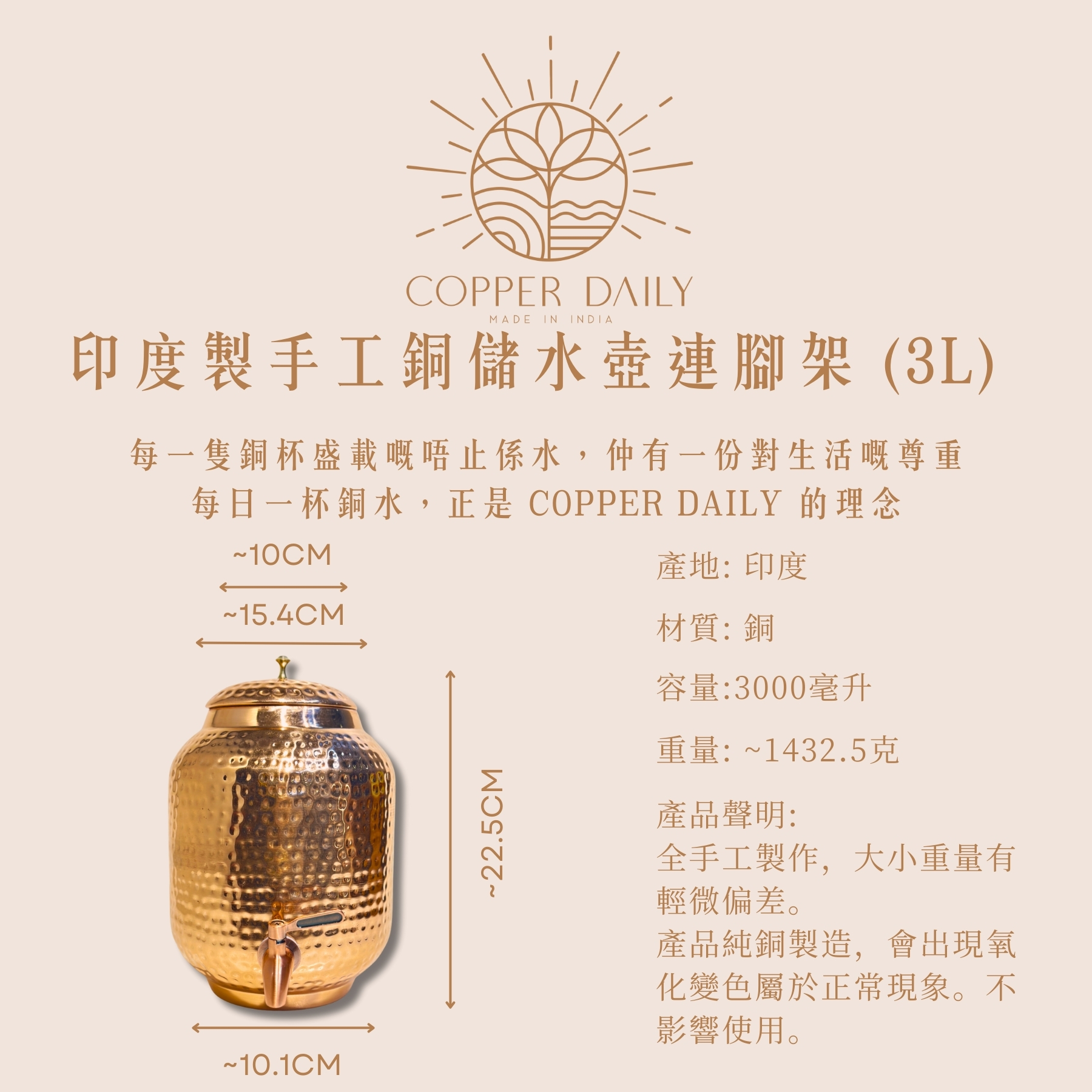Copper Daily’s drinkware is crafted using over 99% high-purity copper.