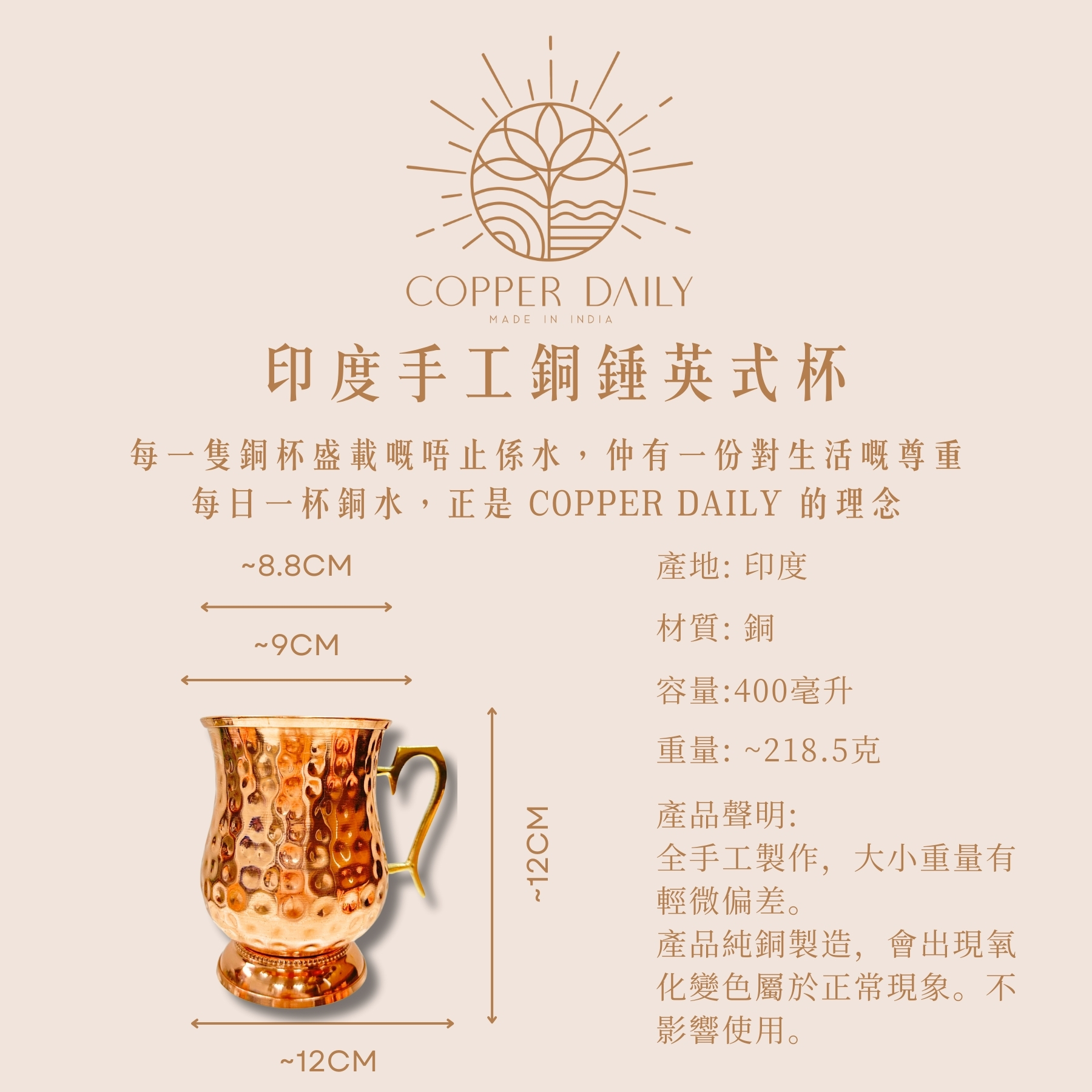 Copper Daily’s drinkware is crafted using over 99% high-purity copper.