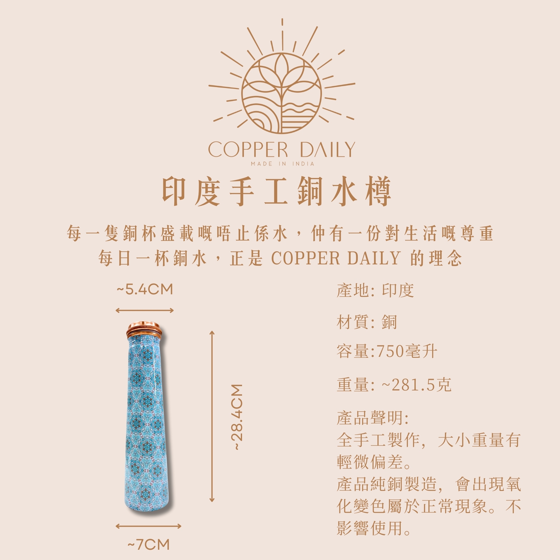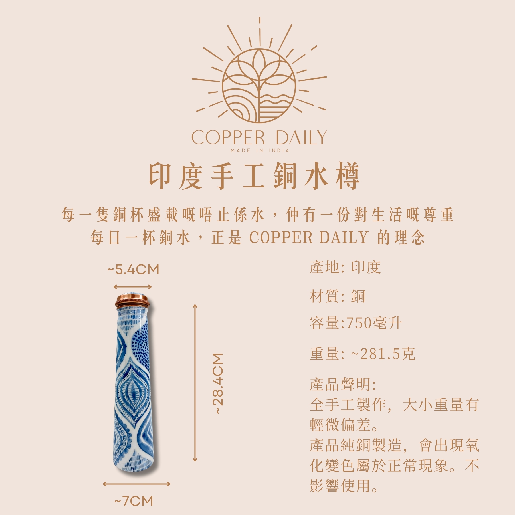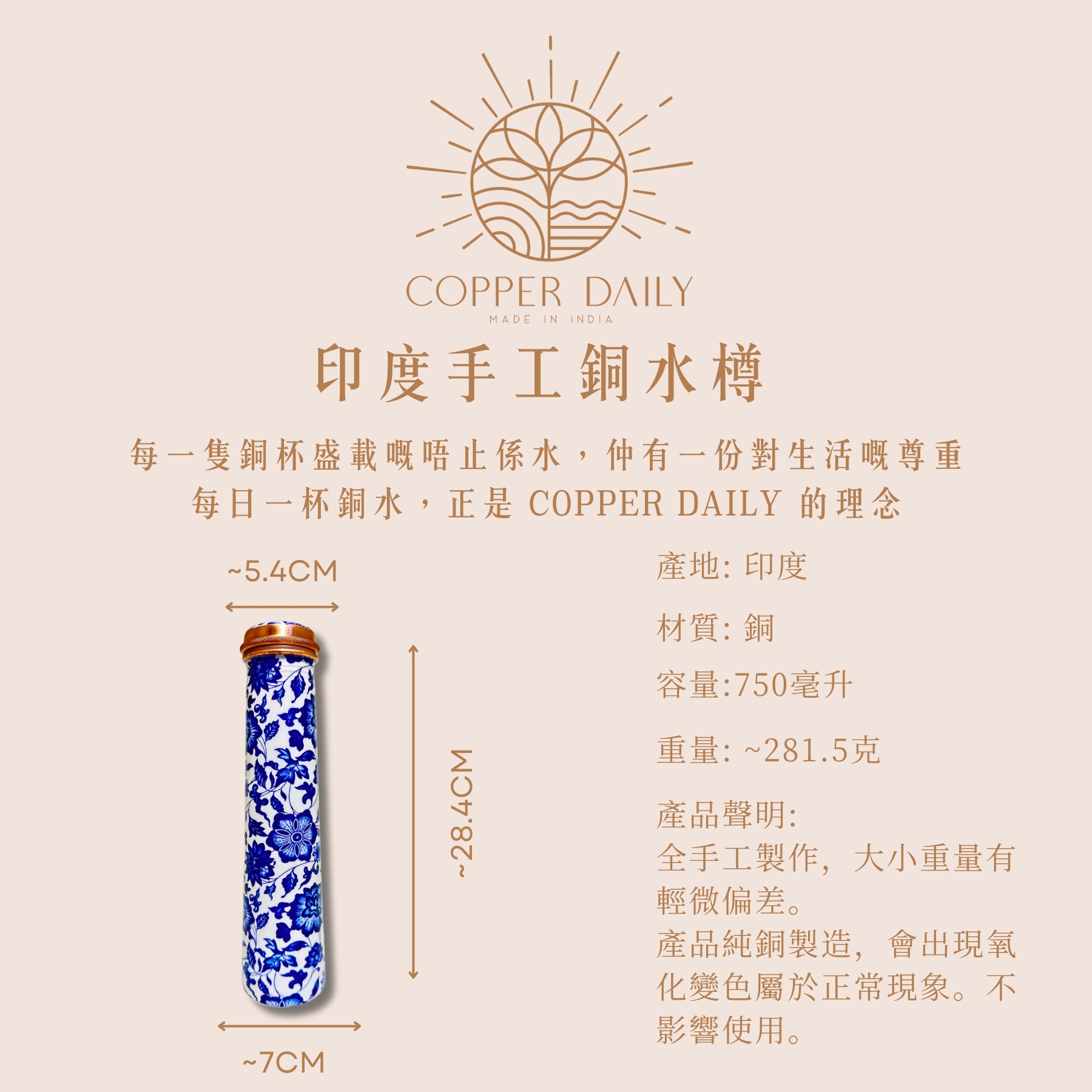 Copper Daily’s drinkware is crafted using over 99% high-purity copper.