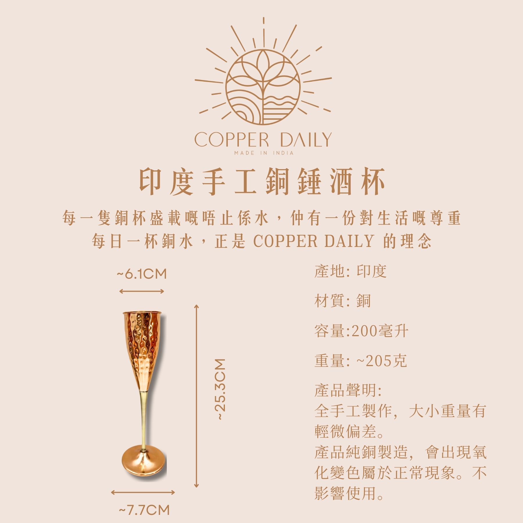 Copper Daily’s drinkware is crafted using over 99% high-purity copper.