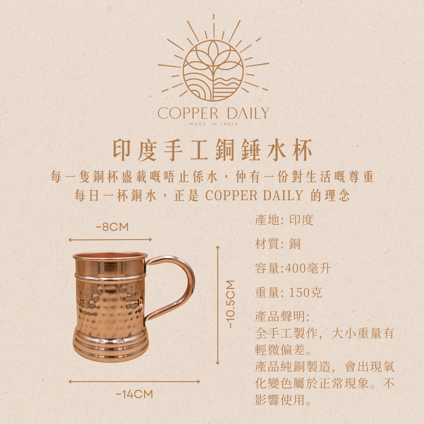 Copper Daily’s drinkware is crafted using over 99% high-purity copper.