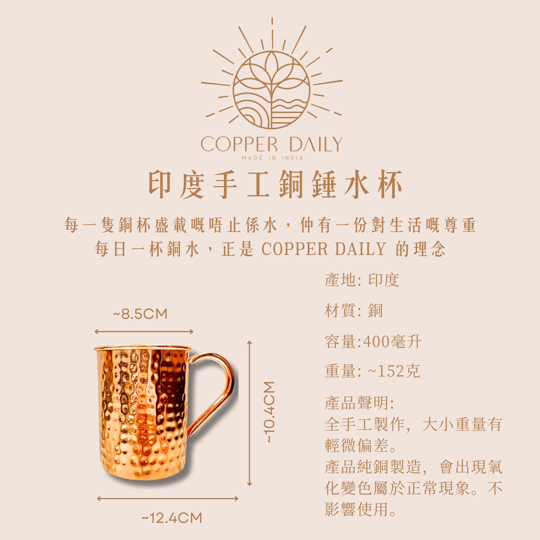 Copper Daily 所推出嘅銅飲具,用上含量超過 99% 嘅高純度銅材質製造