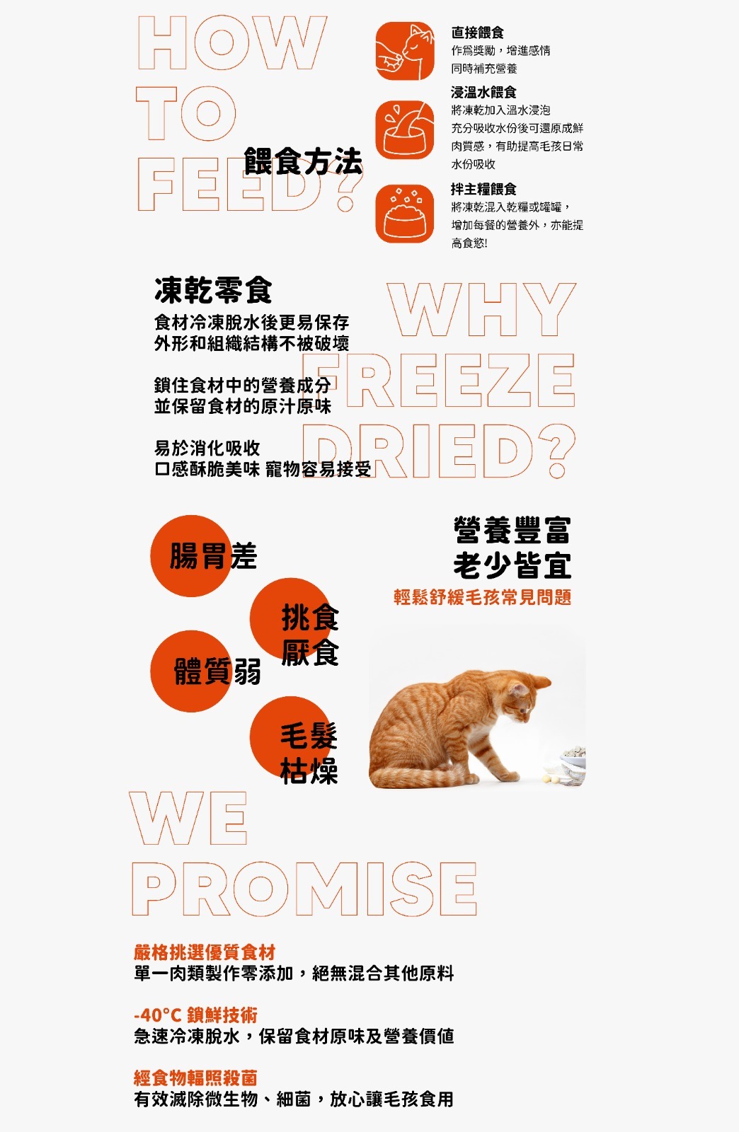 dah freeze-dried treats lock in vital nutrients, made with whole, single-sourced animal protein. Providing essential nutrients that cats love!